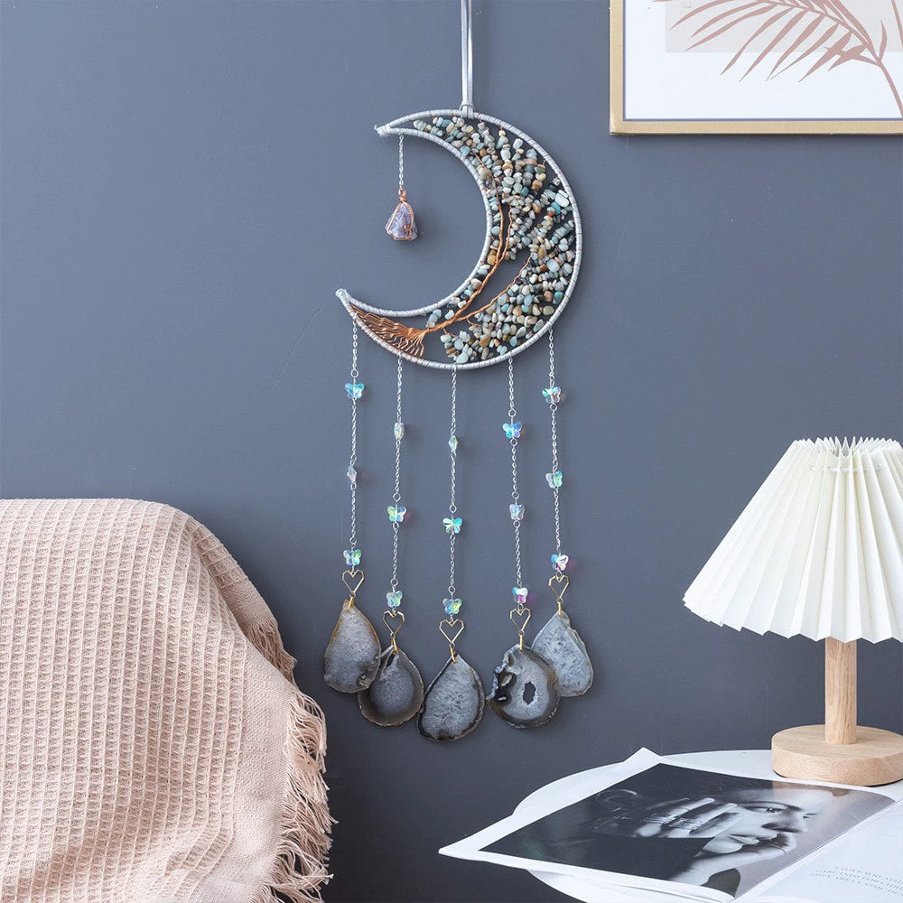 This moon dreamcatcher brings such calm vibes to my space! The crystals catch sunlight and create gentle sparkles while the stones have grounding energy. Perfect size for hanging and the craftsmanship is beautiful. Makes my gaming corner feel more balanced and peaceful. Totally recommend!