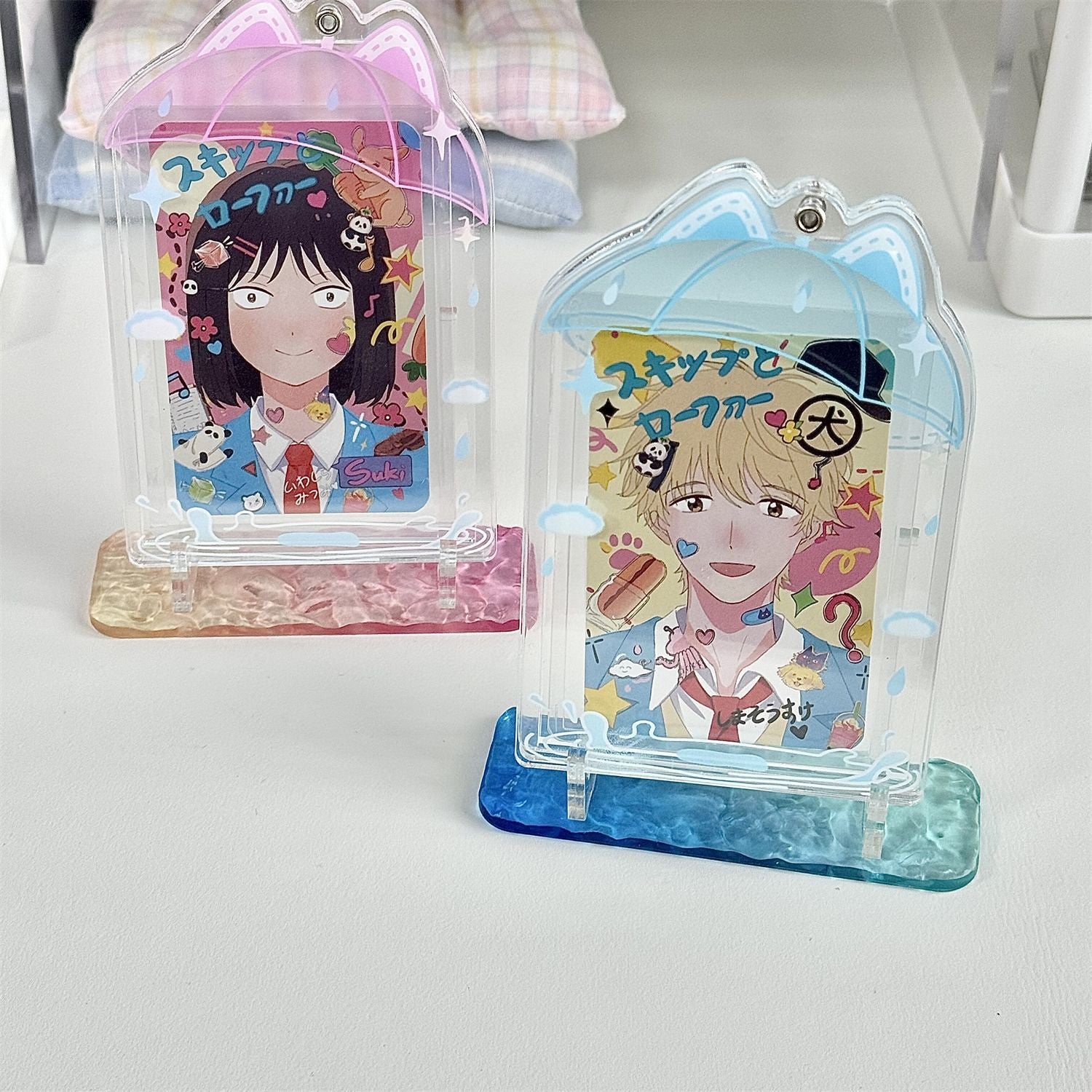 This stand is everything! The acrylic is crystal clear and the wave base catches the light beautifully. I got the pink gradient one and it matches my kawaii setup perfectly. Super sturdy and holds my phone at a great angle for watching streams!